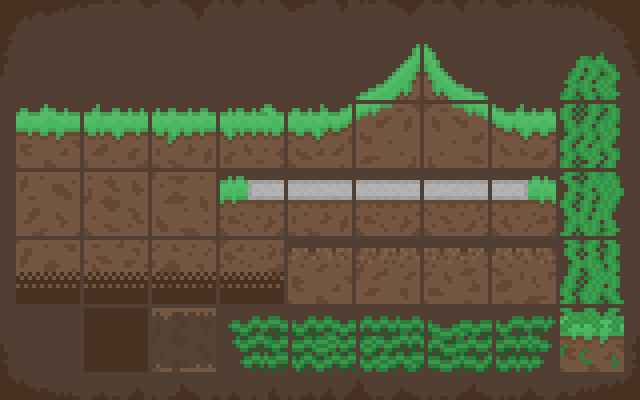 The sprites made for the game's tilemap